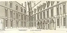 Según la descripción hecha por este arquitecto, el conjunto se componía principalmente de dos edificios hoteleros con un pabellón que formaba la esquina (como el del Louvre bajo Enrique II), todos levantados a la antigua usanza de la época. Los muros eran de piedra blanca y ladrillo, tanto por fuera como por dentro, decorados con molduras y otros enriquecimientos. Mármol policromado rojo y negro también adornaba las fachadas.