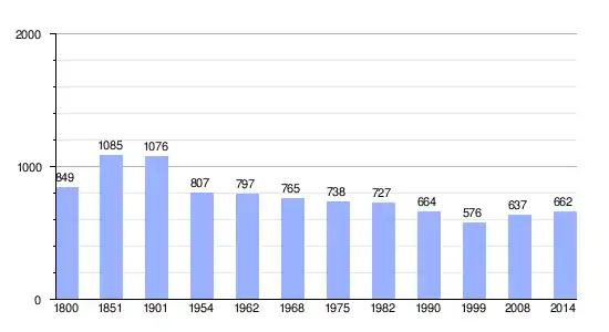 Los datos demográficos contemplados en este gráfico de la comuna de Châtelais[4] se han cogido de 1800 a 1999 de la página francesa EHESS/Cassini, y los demás datos de la página del INSEE.[5]
