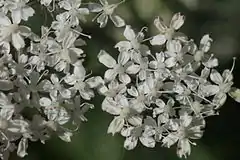 Es una hierba perenne, toda ella pelosa –más densamente en la parte inferior– excepto en los radios. Tallos de 30-60 cm de altura, ocasionalmente purpúreos en la parte inferior, asurcados. Hojas inferiores de 10-12 × 4-8 cm, 2 ternatisectas o 2 pinnatisectas, de contorno triangular, de color verde, generalmente pelosas –pelos de las venas del envés más largos que los del haz–, con pecíolos largos, con divisiones de último orden poco o nada solapadas, ovadas, incisas, con ápice redondeado, mucronado; hojas caulinares superiores escasas, similares a las inferiores pero más pequeñas. Las inflorescencias en umbelas con pedúnculos más largos que los radios –hasta de 25 cm o más–, con 4-20 radios de 1,5-6 cm, algunos de los más cortos portan umbélulas con flores masculinas casi exclusivamente; umbelas terminales sobrepasadas por las laterales, con flores hermafroditas y numerosas masculinas; umbelas laterales con la mayoría de las flores –o todas– masculinas. Brácteas 0-2, lanceoladas, con margen escarioso, generalmente ciliadas. Bractéolas 5-15, de 4- 5 mm, similares a las brácteas, persistentes. Cáliz sin dientes. Pétalos blancos, ciliados. Estilos 2-3 mm en la fructificación, patentes. Frutos 8-15 × c. 2 mm –algo más largos que los radios secundarios–, atenuados gradualmente en un estilopodio; mericarpos con costillas primarias prominentes en los frutos maduros; carpóforo bifurcado en más de 1/2 de su longitud. Tiene un número de cromosomas de 2n = 22*.[1]