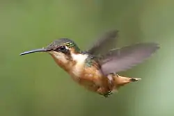 El colibrí heliodoro,[2] colibrí de heliodoro, estrella de gorguera, estrellita de gorguera, estrella cuellirrojo, coqueta cuellirrojo, rumbito diminuto o coqueta de cuello rojo (Chaetocercus heliodor) es una especie de colibrí en la familia Trochilidae. Se encuentra en Colombia, Ecuador, Panamá y Venezuela.[1]