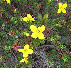 Son subarbustos que alcanzan un tamaño de 15-35 cm de altura, erectos, densamente ramificados. Las ramas densamente foliosas con entrenudos cortos y nudos setosos. Las hojas de 4-10 × 1-4 mm, linear-oblongas, 3-nervias, el haz glabro, el envés con la nervadura media elevada, diminutamente punteado y glabro o con unos cuantos tricomas patentes sobre la nervadura media, los márgenes serrados. Hipanto maduro 4-6 × 3-5 mm, glabro o distalmente cubierto esparcidamente con tricomas lisos en el receptáculo o cerca de él alternando con los lobos del cáliz; lobos del cáliz 2.5-4 mm, ciliados, por lo demás glabros. Pétalos 9-10 × 5-6 mm, amarillos. Anteras 3.5-4 mm, lineares a linear-subuladas, amarillas. Tiene un número de cromosomas de 2 n =18.