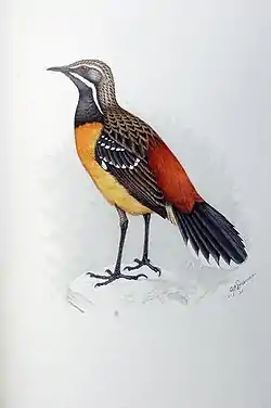 El saltarrocas del Drakensberg (Chaetops aurantius)[2] es una especie de ave paseriforme de la familia Chaetopidae endémica de los herbazales alpinos y roquedales de las montañas Drakensberg, en el sudeste de Sudáfrica. Junto al saltarrocas del Cabo (C. frenatus) son los dos únicos miembros vivos de la familia Chaetopidae.