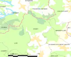 Chagey es una población y comuna francesa, situada en la región de Franco Condado, departamento de Alto Saona, en el distrito de Lure y cantón de Héricourt-Est.