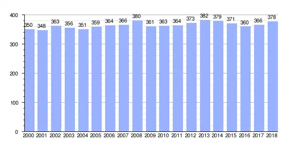 | Gráfica de evolución demográfica de Chamín (parroquia) entre 2000 y 2018 |