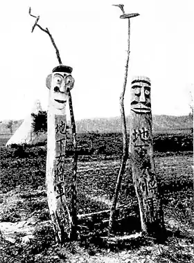 ![]() Jangseung o guardianes de aldea: estos postes de Tótem se ubican en los límites del centro poblado para ahuyentar a los espíritus malignos. | ||