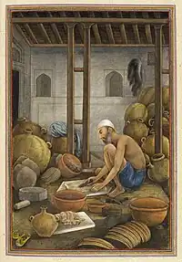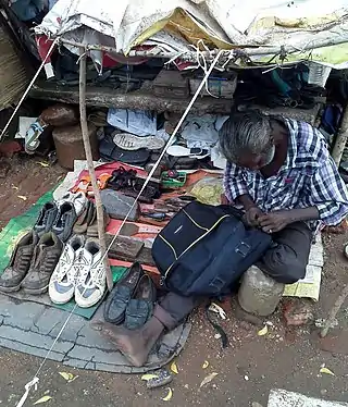 ![]() Un zapatero en el trabajo (presumiblemente miembros de la casta "Chamaar") | ||