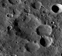 ![]() Cráteres satélite. Fotografía de la misión Lunar Reconnaissance Orbiter |