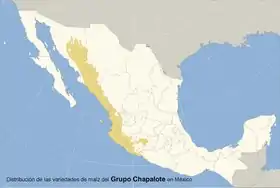 ![]() Distribución de las variedades de maíz del grupo Chapalote en México | ||
