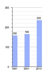 | Gráfica de evolución demográfica de Charbonier entre 1991 y 2010 |