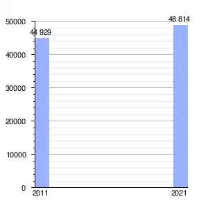 | Gráfica de evolución demográfica de Charneca de Caparica e Sobreda entre 2011 y 2021 |