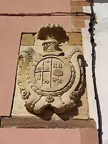 El apellido data del año 1307,[2][3] pero hasta 1798 no se incorporaron los expedientes de hidalguía, y en él consta el escudo de armas que aparecía en la casa de Los Arcos. Su heráldica consta de un pino, y un león andante, atravesado al pie del tronco, arrancado; a cada lado del árbol, un castillo.[4] Existe otro escudo según Vicente de Cadenas y Vicent: azul, una llave de plata, puesta en palo y acompañada, en la diestra, por un candado de oro.[5]