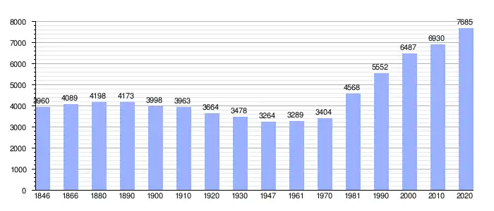 Todos los datos históricos relativos al actual municipio, el siguiente gráfico refleja su evolución demográfica, incluyendo municipios después de efectuada la fusión el 1 de enero de 1977.