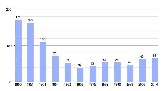 Los datos demográficos contemplados en este gráfico de la comuna de Chatonnay[4] se han cogido de 1800 a 1999 de la página francesa EHESS/Cassini, y los demás datos de la página del INSEE.[5]