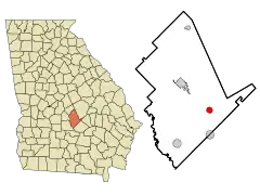 ![]() Ubicación en el condado de Dodge en el estado de Georgia ![]() | ||