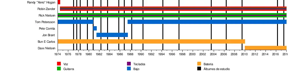 Rick Nielsen (guitarra solista, teclados, coros, 1974-presente) Robin Zander (voz, guitarra rítmica, teclados, 1974-presente) Tom Petersson (bajo, coros, 1974-1980, 1987-presente) Daxx Nielsen (batería, 2010-presente) | ||