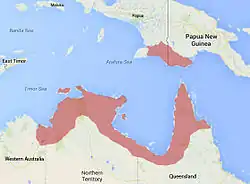 Se distribuye por Papúa, Papúa Nueva Guinea y en Australia por Australia Occidental, el Territorio del Norte y Queensland. Su área de distribución se enmarca en zonas climáticas de sabana tropical, Koopen Aw, con una temperatura media superior a 18 °C todos los meses, y la estación seca en invierno.