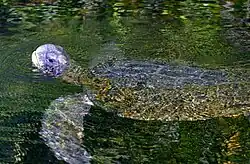 La dieta consiste en un 90% en algas, pero llegan a comer algunos peces, plantas acuáticas, medusas y pequeños crustáceos.