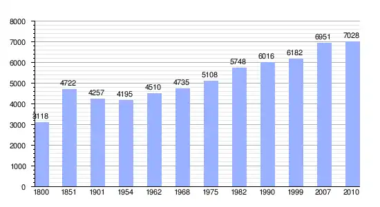 Los datos demográficos contemplados en este gráfico de la comuna de Chemillé[4] se han cogido de 1800 a 1999 de la página francesa EHESS/Cassini, y los demás datos de la página del INSEE.[5]