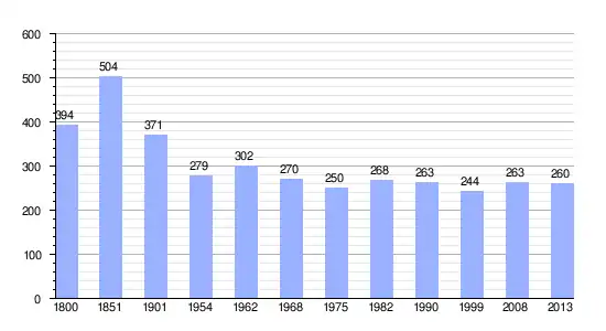 Los datos demográficos contemplados en este gráfico de la comuna de Chemiré-sur-Sarthe[4] se han cogido de 1800 a 1999 de la página francesa EHESS/Cassini, y los demás datos de la página del INSEE.[5]