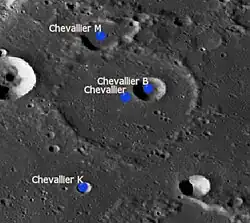 Por convención estos elementos son identificados en los mapas lunares poniendo la letra en el lado del punto medio del cráter que está más cerca de Chevallier.