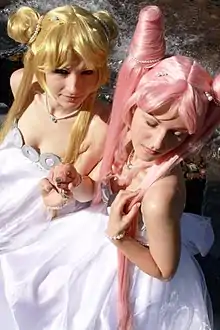 Chibiusa es una niña de ojos color marrón rojizo y cabello rosado, que aparece a partir de la segunda temporada. Es conocida por su distintivo peinado, exótico y llamativo, el cual le da a su cabeza una apariencia poco usual como si dos orejas de conejo salieran de encima de la misma.