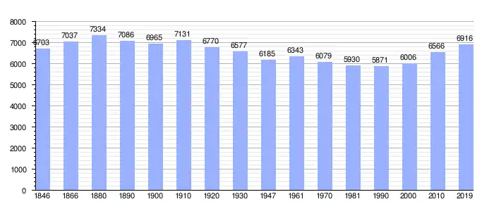 Todos los datos históricos relativos al actual municipio, el siguiente gráfico refleja su evolución demográfica, incluyendo municipios después de efectuada la fusión el 1 de enero de 1977.