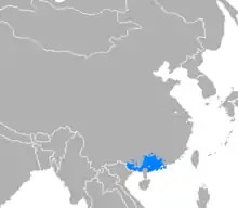 (Provincia de Cantón Hong kong y Macao) Guangxi (Sureste); partes de Hainan. Diáspora china | |