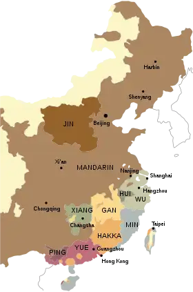 Aunque la tradición china prefiere hablar de dialectos (方言, fāngyán, fong1 jin4) al referirse a las variedades del chino hablado, la inteligibilidad mutua entre éstas es prácticamente nula por lo que los lingüistas consideran al "chino" propiamente como una familia lingüística, la familia sinítica, y no una lengua única.