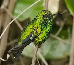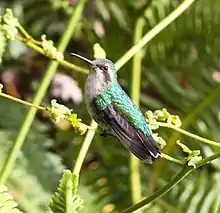 - BirdLife International (2012). «Chlorostilbon gibsoni». Lista Roja de especies amenazadas de la UICN 2013.2 (en inglés). ISSN 2307-8235. Consultado el 26 de noviembre de 2013.