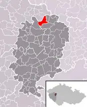 Se encuentra ubicada al noreste de la región, en la cuenca hidrográfica del río Berounka —un afluente izquierdo del río Moldava que, a su vez, lo es del Elba—, y cerca de la frontera con la región de Bohemia Central.[1]