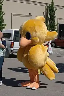 - Esta obra contiene una traducción derivada de «Chocobo (series)» de Wikipedia en inglés, publicada por sus editores bajo la Licencia de documentación libre de GNU y la Licencia Creative Commons Atribución-CompartirIgual 4.0 Internacional.