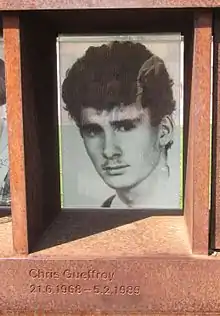 Chris Gueffroy (21 de junio de 1968 - 6 de febrero de 1989) fue la última persona a la que se disparó y la penúltima en morir en un intento de fuga mientras intentaba escapar de Berlín Oriental a Berlín Occidental a través del Muro de Berlín.