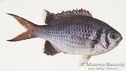 Chromis xanthura es una especie de peces de la familia Pomacentridae en el orden de los Perciformes.