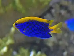 Chrysiptera starcki es una especie de peces de la familia Pomacentridae en el orden de los Perciformes.