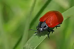 Chrysomela es un género de escarabajos de las hojas de la familia Chrysomelidae que se encuentra en casi todo el mundo, pero falta en Australia. Contiene alrededor de 40 especies, incluyendo 7 en el este y el norte de Europa.[2] Además, incluye al menos 17 especies en América del Norte, incluyendo el escarabajo de hoja de álamo Chrysomela scripta.[3] Se alimentan especialmente de Salix y Populus.