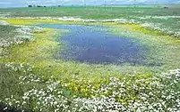 Las charcas vernales son un tipo de pantano que se encuentra sólo estacionalmente en depresiones poco profundas del terreno. Pueden estar cubiertas de agua poco profunda, pero en verano y otoño pueden estar completamente secas. En el oeste de Norteamérica, las charcas vernales tienden a formarse en praderas abiertas,[11] mientras que en el este suelen aparecer en paisajes boscosos.[12] Más al sur, las charcas vernales se forman en sabanas de pinos y flatwoods. Muchas especies de anfibios dependen de las charcas vernales para reproducirse en primavera; estos estanques proporcionan un hábitat libre de peces que se comen los huevos y las crías de los anfibios.[8] Un ejemplo es la rana topo en peligro de extinción. (Rana sevosa).[13] Estanques temporales similares se dan en otros ecosistemas del mundo, donde pueden tener nombres locales. Sin embargo, el término charca vernal puede aplicarse a todos estos ecosistemas de charcas temporales.[8]