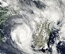 El Ciclón Fanele dos días antes de tocar tierra al noreste la tormenta tropical moderada Eric en el noreste de Madagascar.