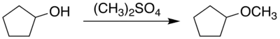 1) Mediante la metilación del ciclopentanol.