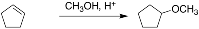 2) Mediante la adición de metanol al ciclopenteno. Este segundo método es mejor desde el punto de vista de la química sostenible ya que no produce subproductos.