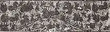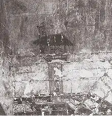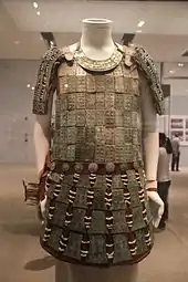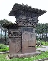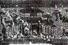 El diseño de las tumbas excavadas en las laderas de las montañas generalmente tenía una cámara frontal, cámaras laterales y cámaras traseras diseñadas para imitar un complejo de salas sobre el suelo.[139] La tumba del rey Liu Sheng (113 a. C.) en la provincia de Hebei, no solo tenía un salón delantero con cortinas en las ventanas y ajuar funerario, carruajes y caballos en la cámara lateral separada sur y bienes de almacenamiento en la cámara lateral norte, sino también el restos de casas de madera real con tejas erigidas en su interior (junto con una casa hecha de losas de piedra y dos puertas de piedra en la cámara trasera).[139] Se encontraron puertas hechas completamente de piedra en muchas tumbas Han, como en el Mausoleo de Qianling del período Han tardío.[143]