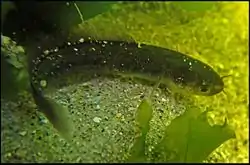 Sus colores van del marrón rojizo al marrón oscuro, incluso a veces negro, y las aletas generalmente tienen márgenes rojizos.[3] Las partes inferiores son de color rojo, fusionándose con un gris pálido.