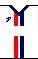 - Uniforme local: Camiseta azul marino líneas diagonales rojas y blancas, pantalón blanco detalles azul marino y medias azul marino.