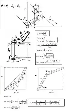 En otro casos, para robots con pocos grados de libertad, existen soluciones analíticas mediante el uso de métodos geométricos, que consisten en la utilización de las relaciones trigonométricas y la resolución de los triángulos formados por los elementos y articulaciones del robot.