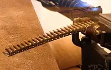 - Esta obra contiene una traducción derivada de «Belt (firearms)» de Wikipedia en inglés, publicada por sus editores bajo la Licencia de documentación libre de GNU y la Licencia Creative Commons Atribución-CompartirIgual 4.0 Internacional.