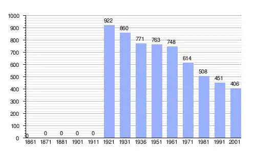 | Gráfica de evolución demográfica de Cinte Tesino entre 1861 y 2001 |
