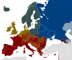 Son denominados cinturones europeos del alcohol,[1] a las diferentes regionalizaciones que se han hecho en el continente en función de su bebida tradicional, que son: el vino en el área agrícola de la vid, la cerveza en la Europa central donde se produce cebada y lúpulo, y el vodka en las áreas frías donde crece bien la papa o patata. Esta clasificación es de origen popular y anecdótica.[2]