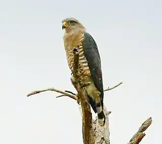 - «Culebrera barrada (Circaetus fasciolatus) Kaup, 1847». en Avibase. Consultado el 18 de febrero de 2015.