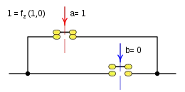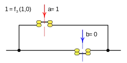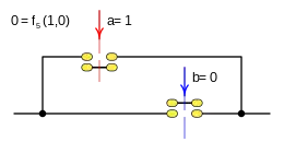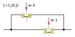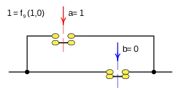 En electricidad y electrónica, las leyes del álgebra de Boole [1] y de la lógica binaria, pueden estudiarse mediante circuitos de conmutación. Un circuito de conmutación estará compuesto por una serie de conmutadores o de interruptor [2] que representarán las variables lógicas de entrada y una o varias cargas que representarán las variables lógicas o funciones de salida.