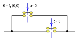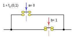 De este modo la Figura 3 representa la función lógica Y (AND), esto es, L=a·b· ... ·n. De acuerdo con la tabla de verdad de dicha función, El circuito está cerrado solo si cada uno de los interruptores que intervienen está cerrados.