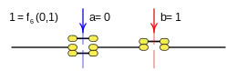 En la figura se representa un pulsador normalmente abierto, en reposo en la parte superior, con el muelle en reposo y sus contactos separados, en la parte inferior se ve ese mismo pulsador actuado, con el muelle comprimido y sus terminales eléctricos en contacto, permitiendo la circulación eléctrica entre los puntos a y b.
